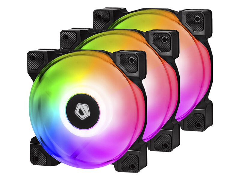 Вентиляторы 120x120x25 ID-Cooling DF-12025-ARGB TRio Snow (3 in 1) Пульт управления PWM резиновые углы Addresable RGB 900-2000об/мин снежно белый