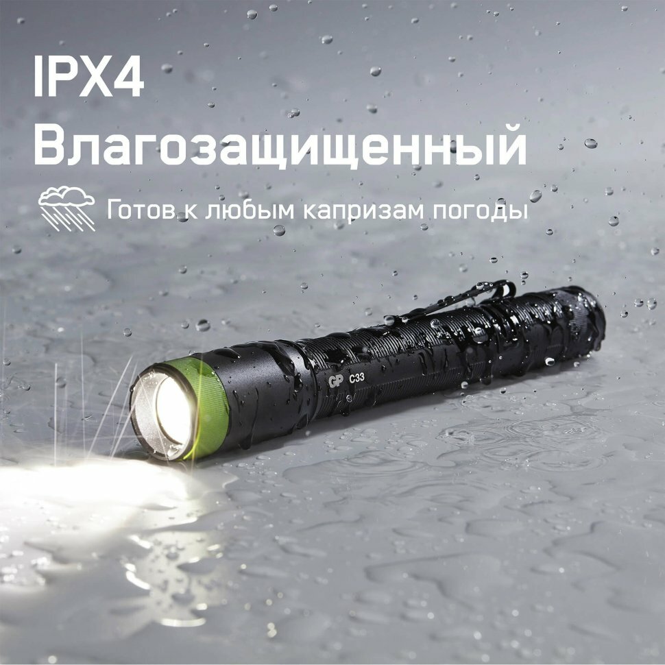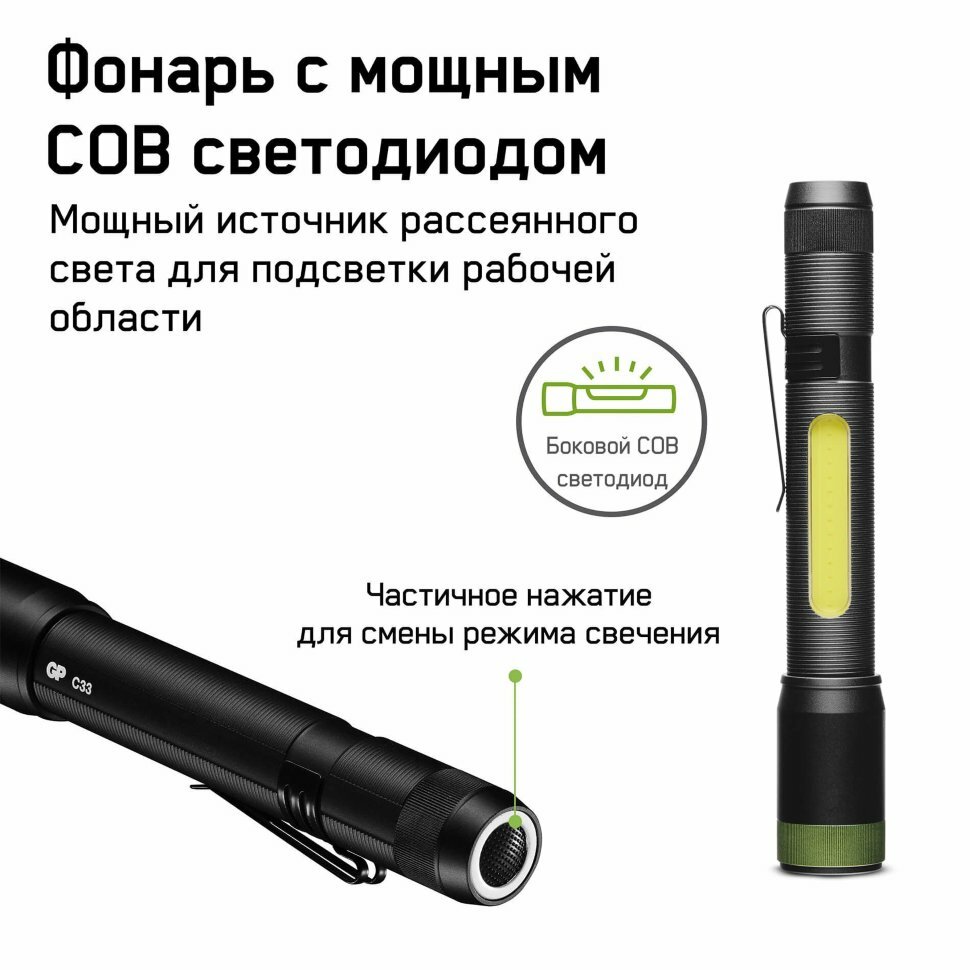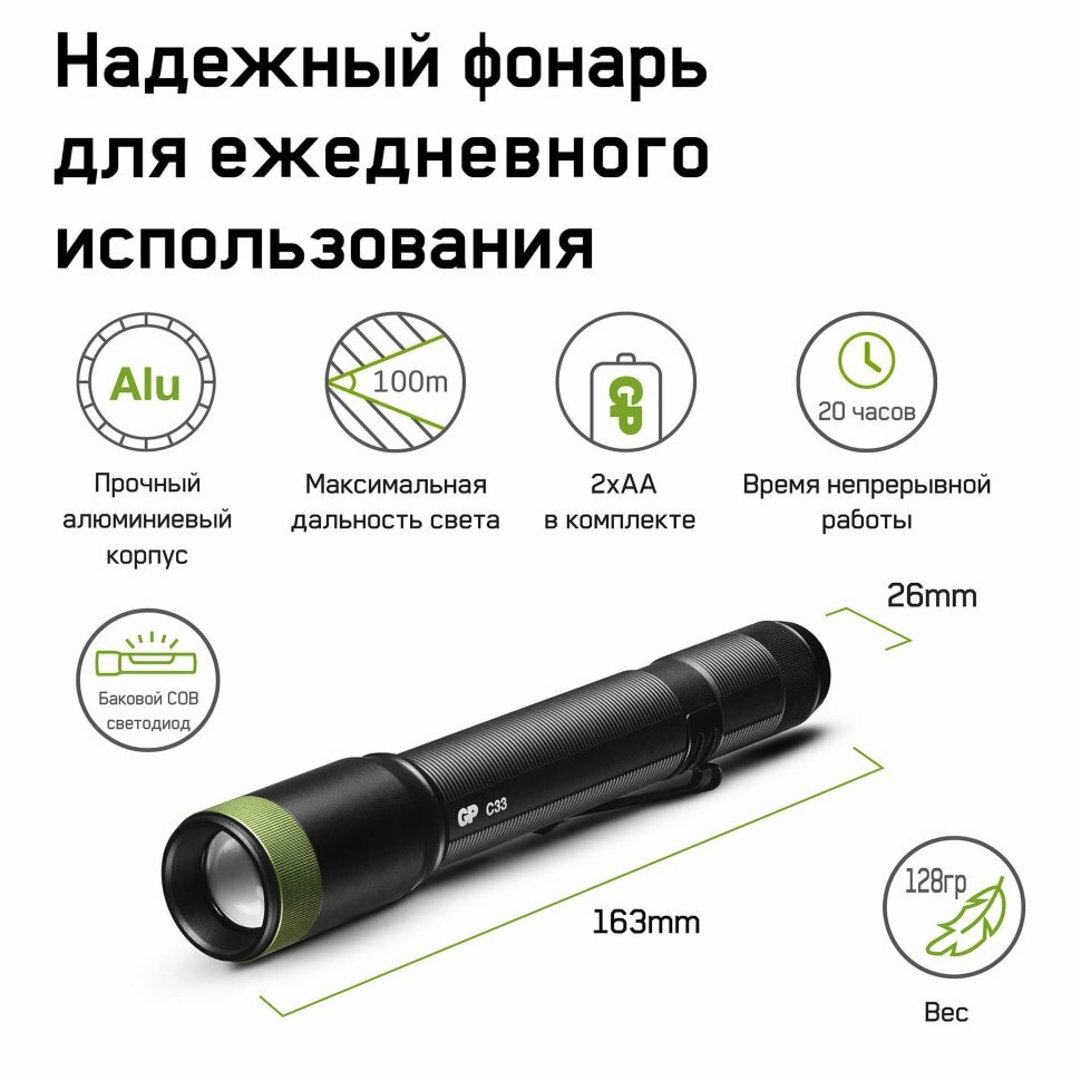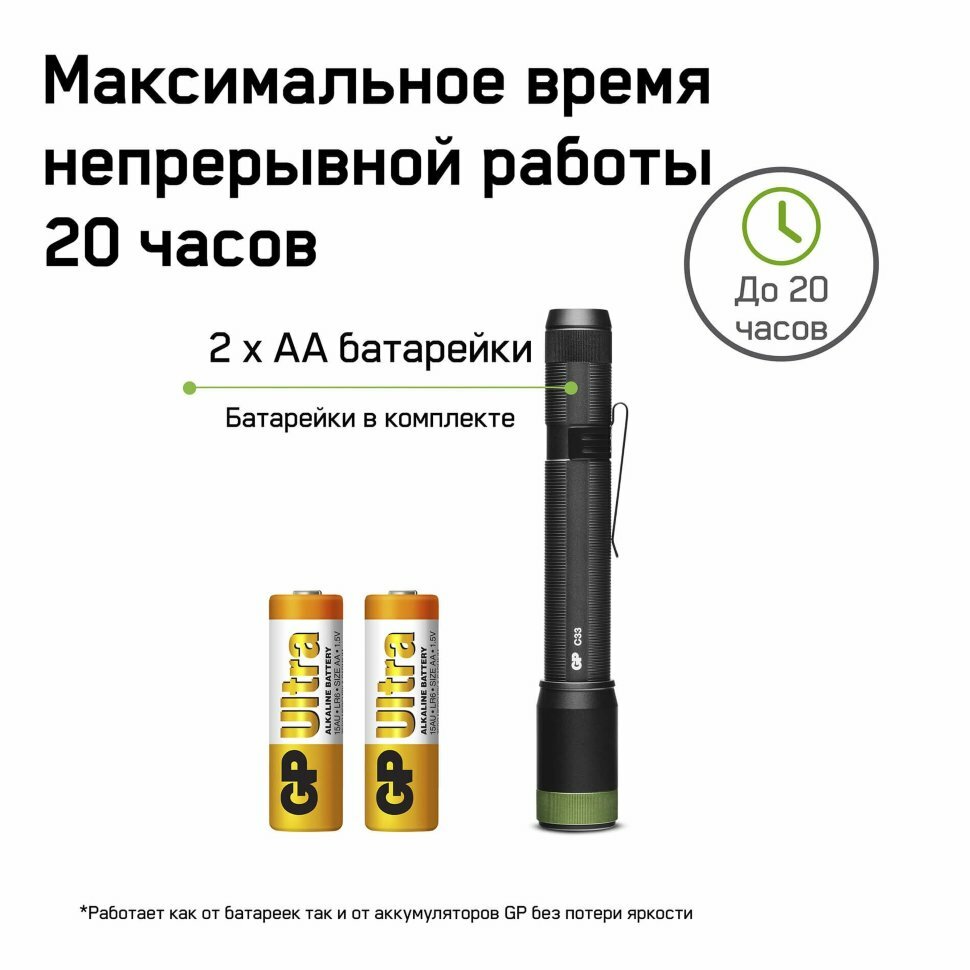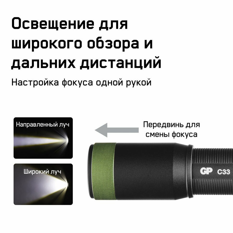 Фонарь ручной C33BE (GP C33BE-2CRFB1) светодиодный 1 LED на батарейках AA алюминий с фокусировкой интересное: