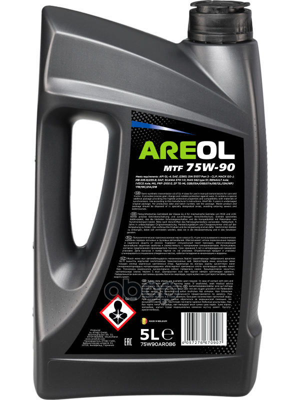 AREOL 75W90AR086 AREOL MTF 75W90 (5)_поусинт. трансм. масо дя робот. и МКПП!\ API GL-4, MB 235.6/235.8