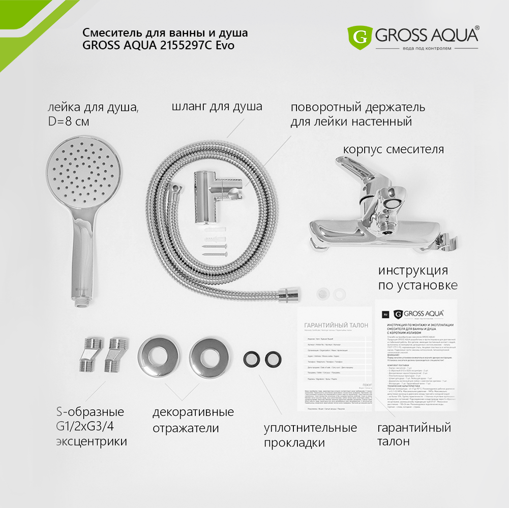 Смеситель для ванны и душа GROSS AQUA Evo 2155297С