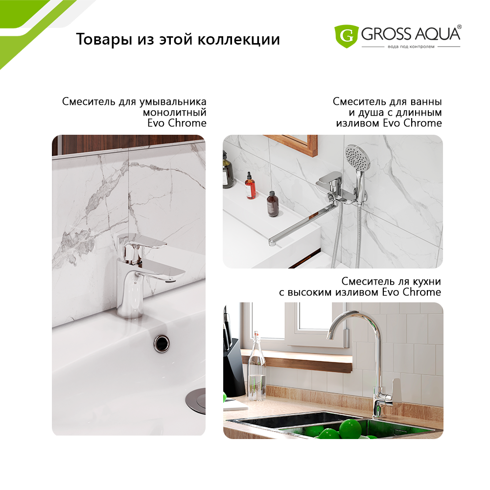 СохранитьСмеситель для ванны с коротким монолитным изливом GROSS AQUA Evo, латунь, хром. 2155297C. интересное: