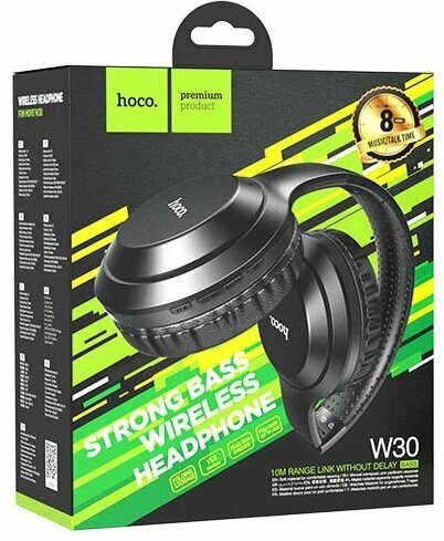Купить Наушники беспроводные, полноразмерные с микрофоном Bluetooth, 300mAh, 8 часов музыки, TF карт, AUX hoco. W30 Fun move - черный