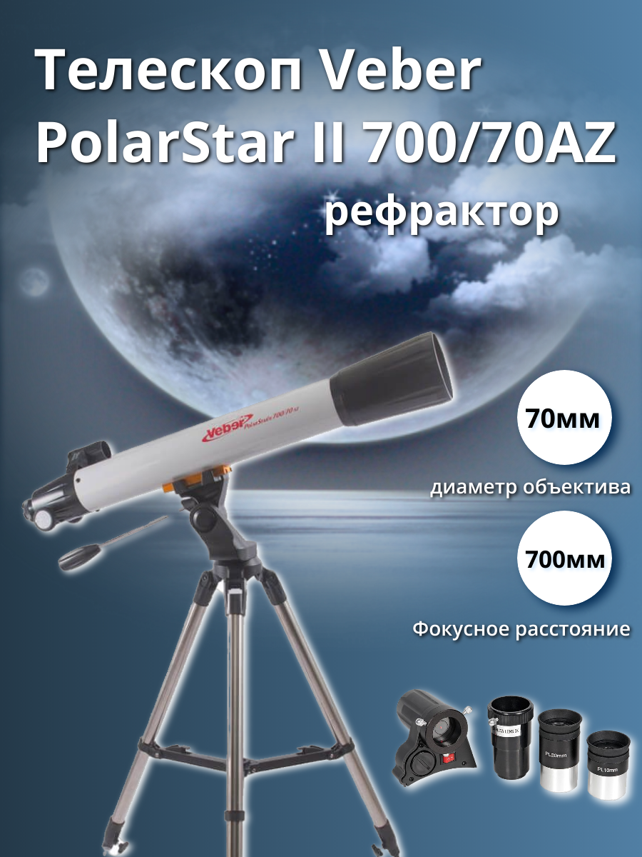 Астрономический телескоп рефрактор Veber PolarStar II 700/70AZ для начинающих и опытных пользователей