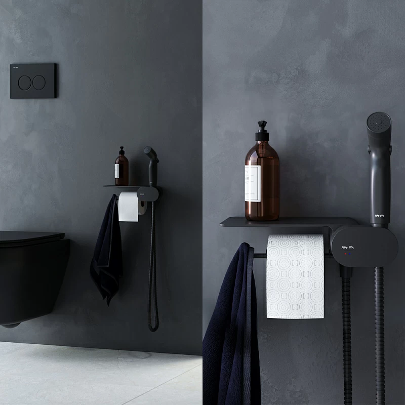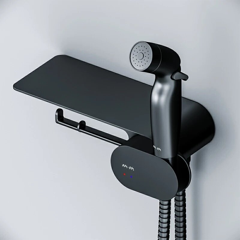 Гигиенический душ со смесителем AM.PM Like черный, полка, держатель для туалетной бумаги