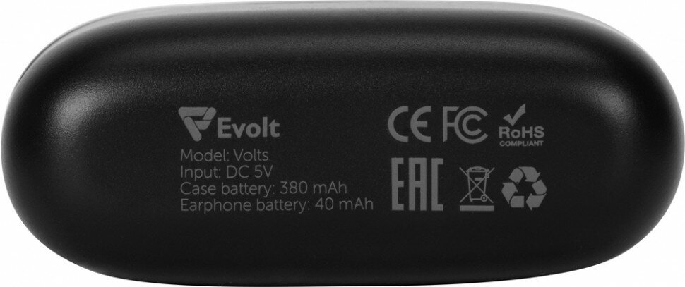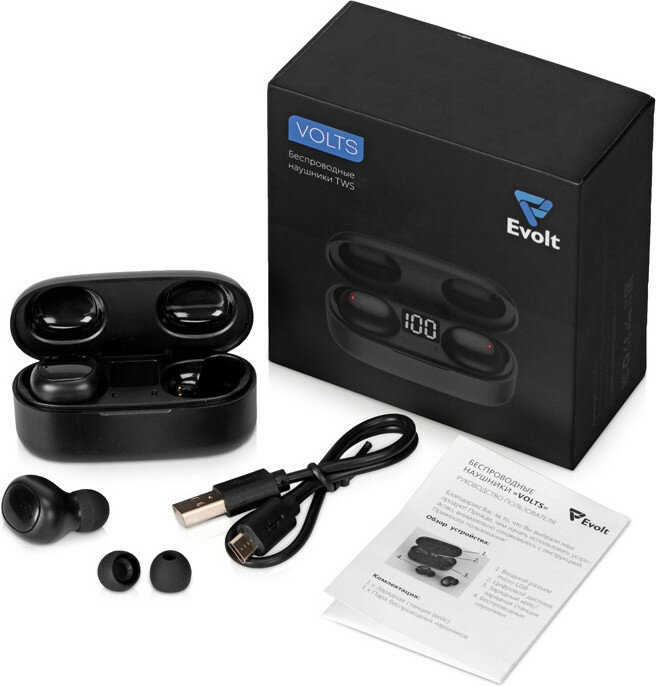 Беспроводные наушники TWS в кейсе Evolt Volts, черный, пластик интересное: