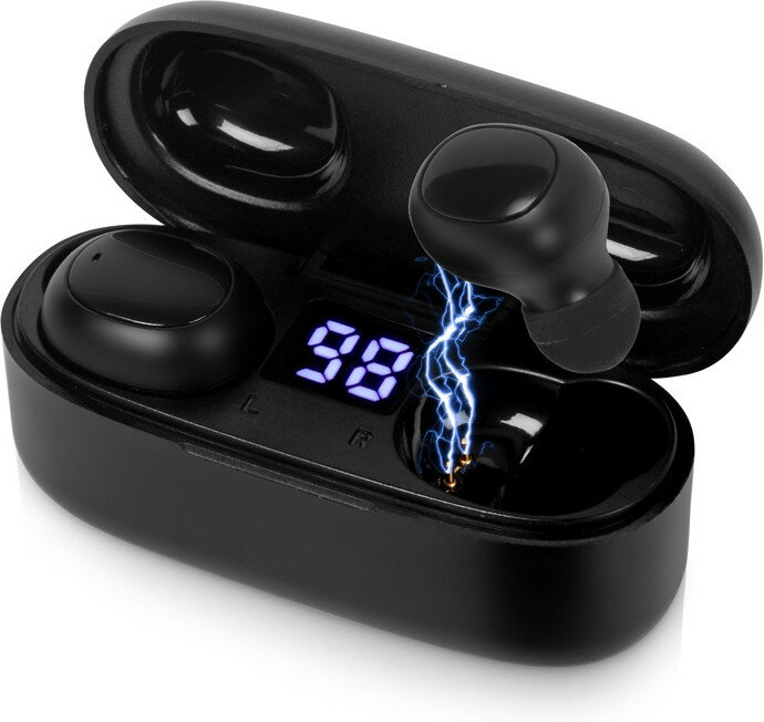 Купить Беспроводные наушники TWS в кейсе Evolt Volts, черный, пластик