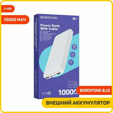Внешний АКБ BOROFONE BJ3 Minimalist 10000mAh, 2хUSB, 2A, LED, Li-Pol (белый)