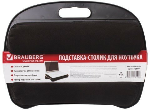 Подставка-столик с мягкими подушками, для ноутбука и творчества BRAUBERG, 430х330 мм, черный, 512669 - 1 шт.