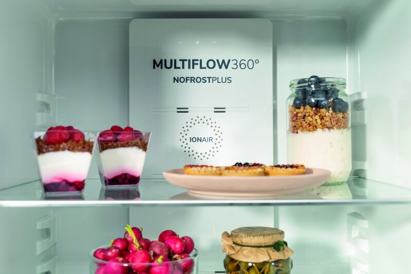 И в работе нет с ним проблем - морозит хорошо, внутри свежо и без посторонних запахов, продукты не портятся, и размораживает он себя сам, а мне надо только мыть его иногда внутри.. Запахи не скапливаются за счет ионизации |