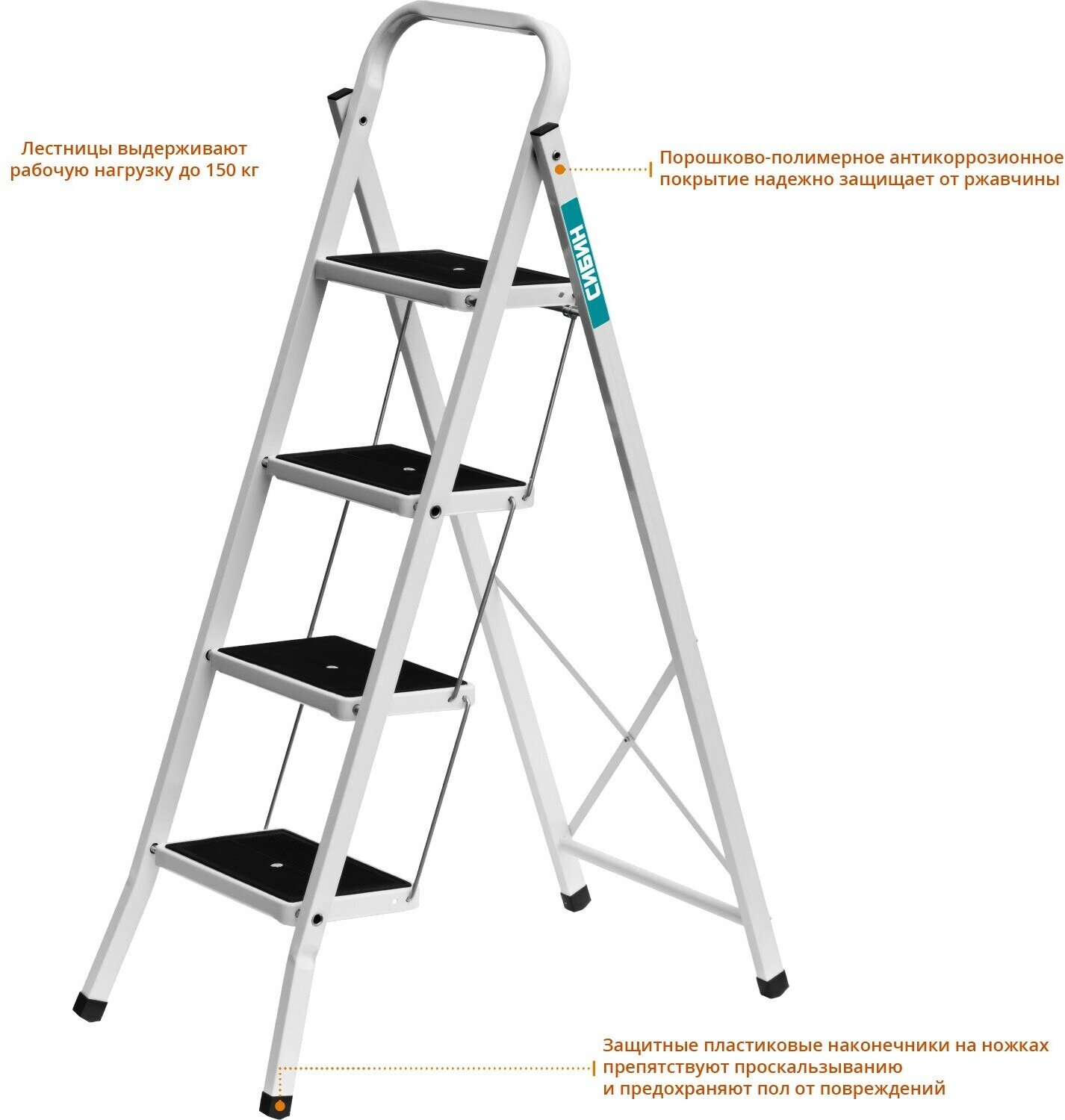 СИБИН число ступеней 4, сталь, максимальная нагрузка 150 кг, лестница-стремянка 38807-04_z01