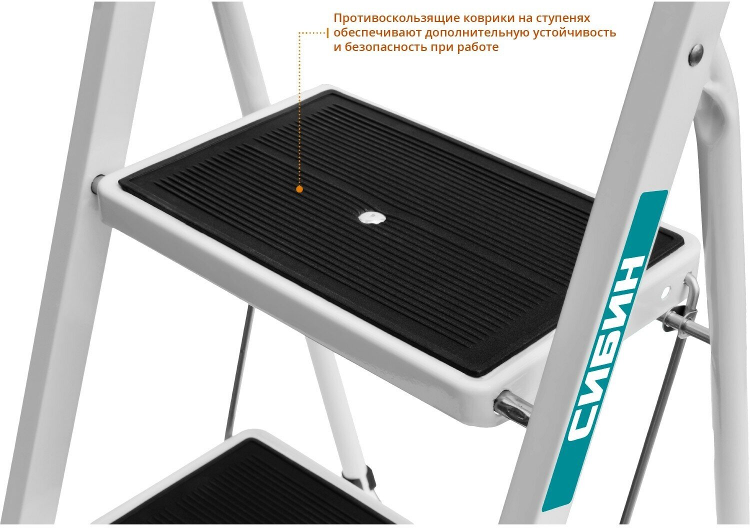 Стальная стремянка c широкими обрезиненными ступенями СИБИН, 4 ступени 38807-04_z01