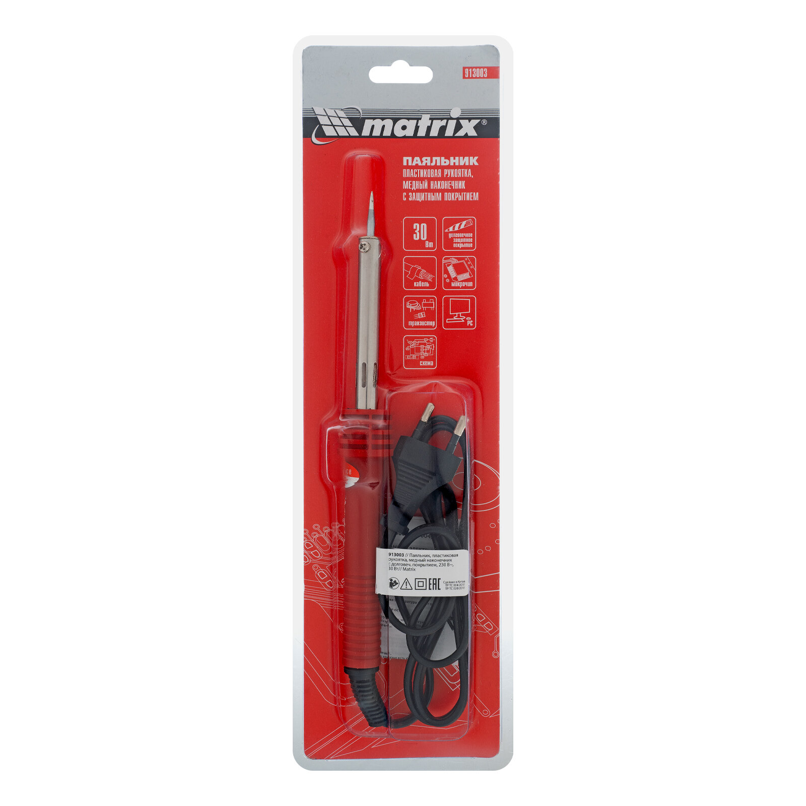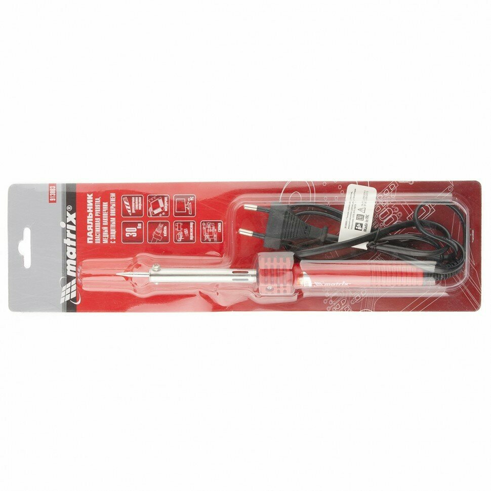 MATRIX Паяльник, пластиковая рукоятка,медный наконечник с долговечным защитным покрытием,220 В,30W// MATRIX 913003