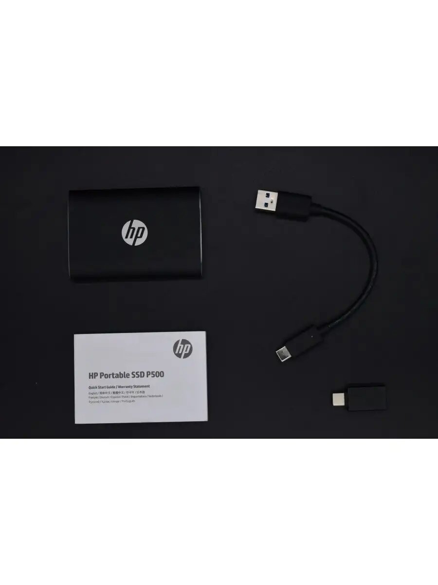 Портативный твердотельный накопитель HP P500, USB 3.1 gen.2 / USB Type-C / USB Type-A, OTG, 250 Гб, R350/W210, Черный