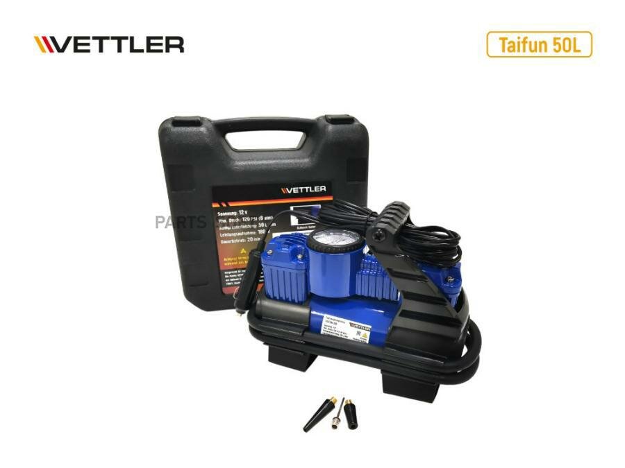 Компрессор автомобильный VETTLER Taifun (50 л/мин., 8 АТМ.) 12В, металлический корпус