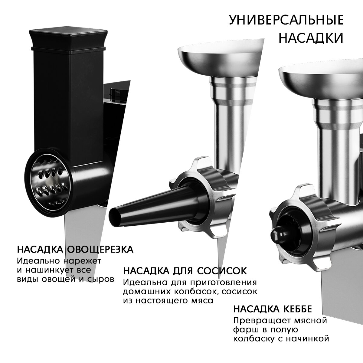 | Плюсы: | Перемалывает любое мясо, даже старую говядину. Фарш однородный. Много нужных насадок. |