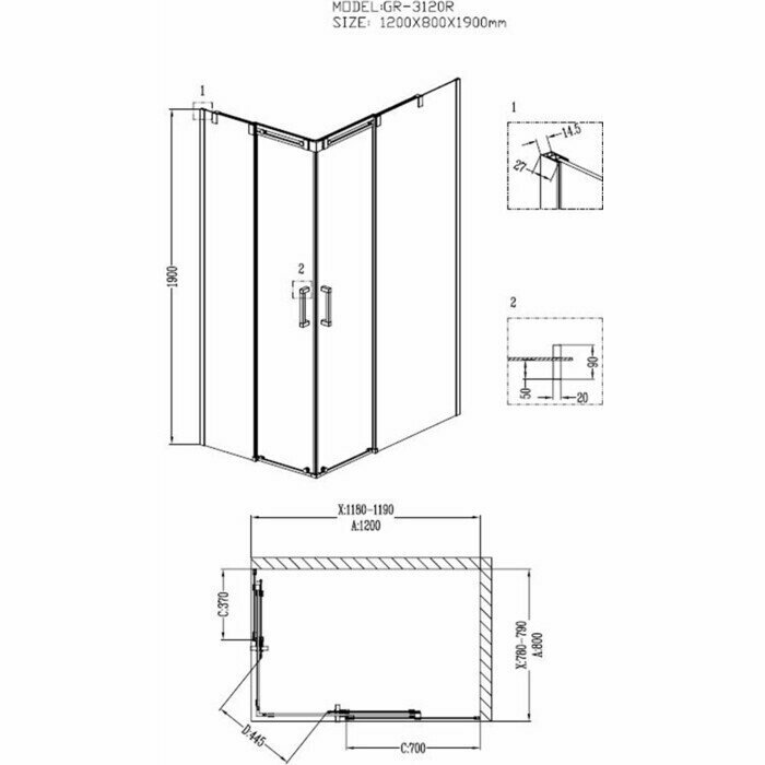 Душевой уголок GROSSMAN Galaxy 120x80 GR-3120R