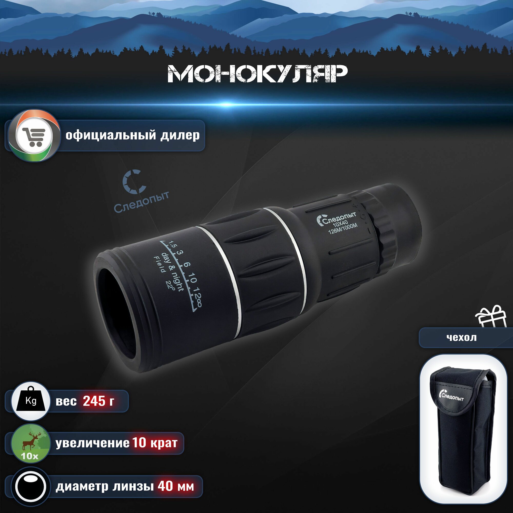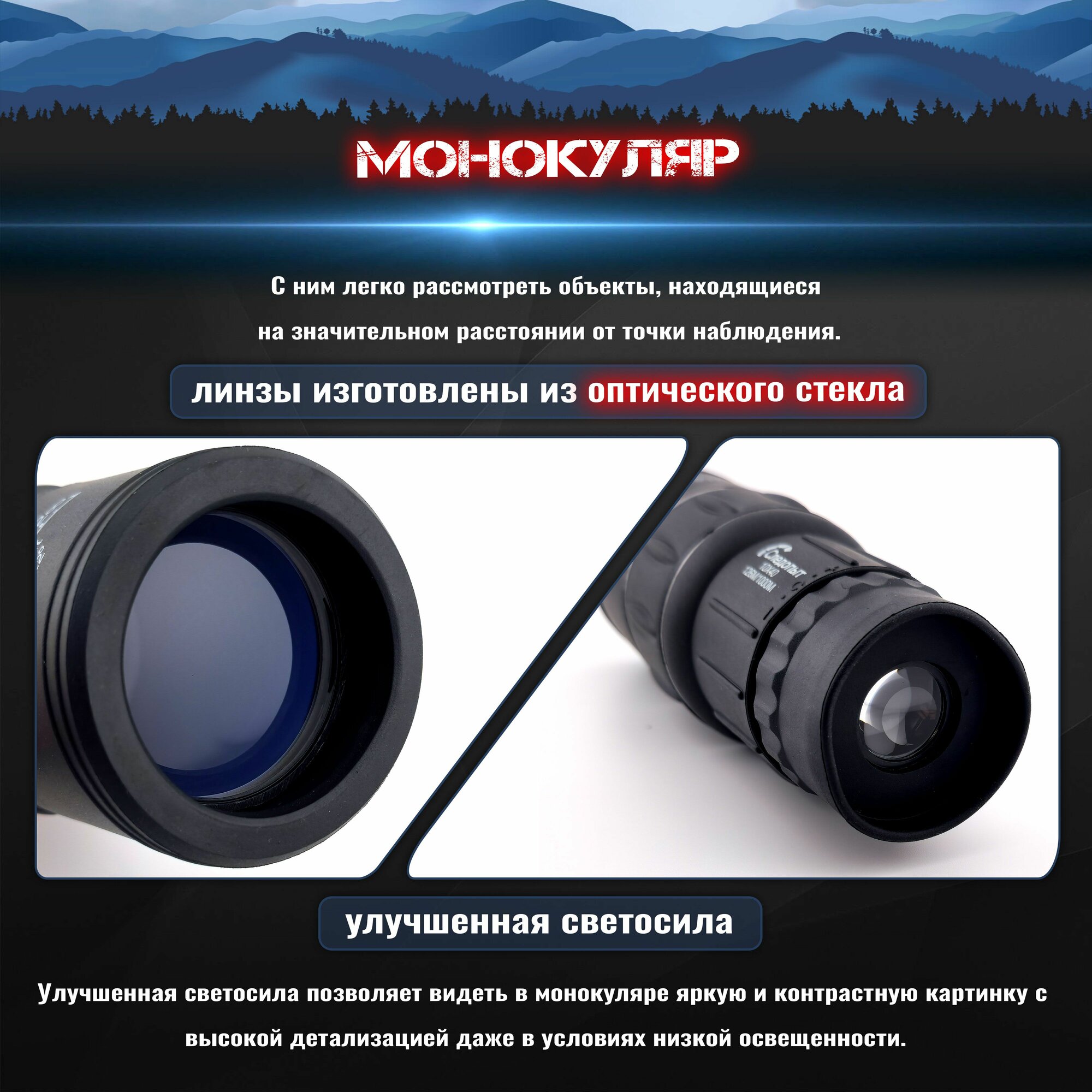 Монокуляр 10х40 "следопыт", черный в чехле, 54*42*150 мм / Оптика для охоты / Монокуляр охотничий / Бинокль для туризма / Монокуляр для путешествий