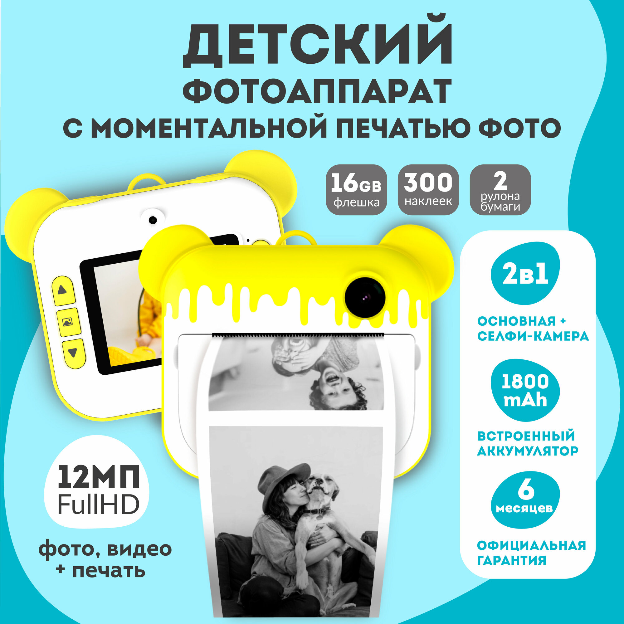 Детский фотоаппарат с мгновенной печатью фото / Полароид моментальной печати для ребенка LUMICUBE DK04 PRINTY LUMICAM (YELLOW)