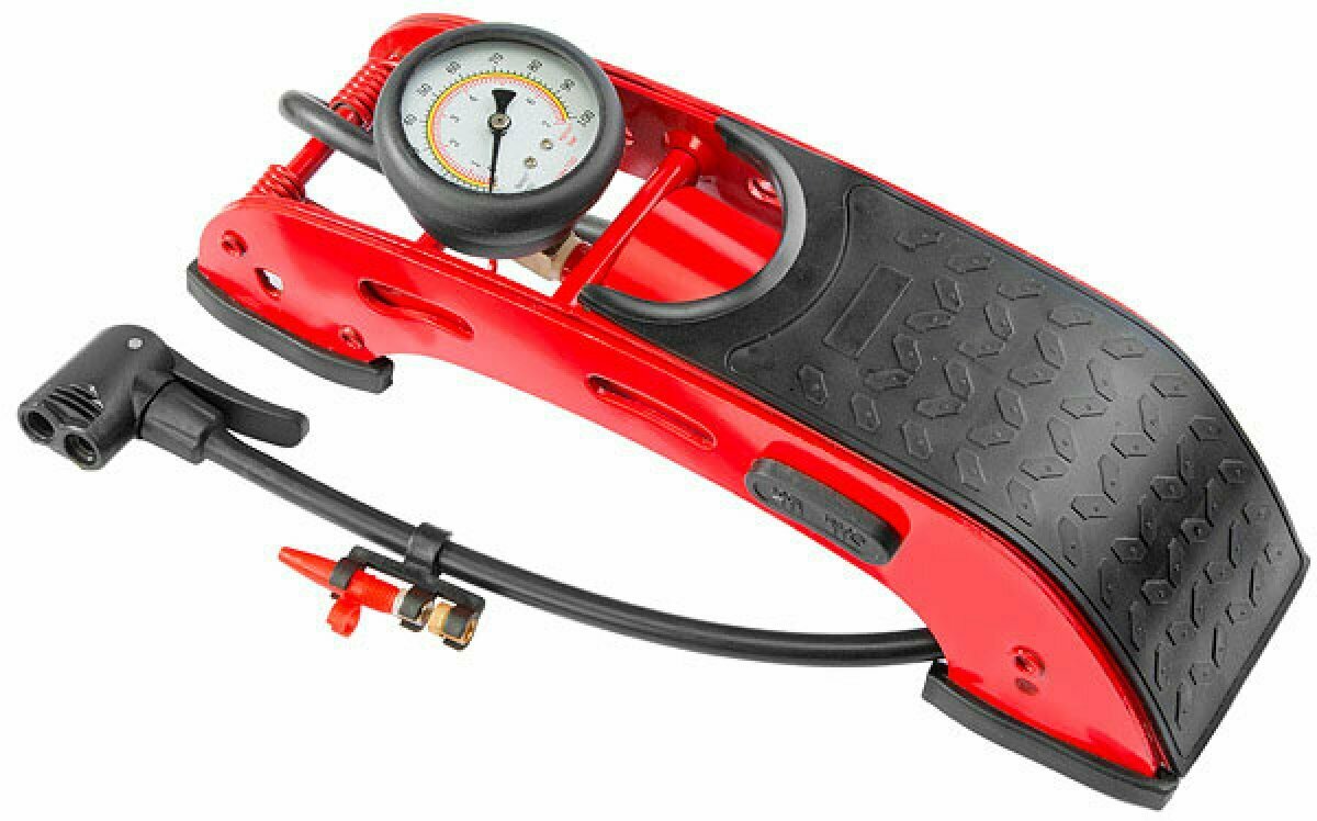 | Плюсы: | Металлический, неплохо качает, наличие манометра. |