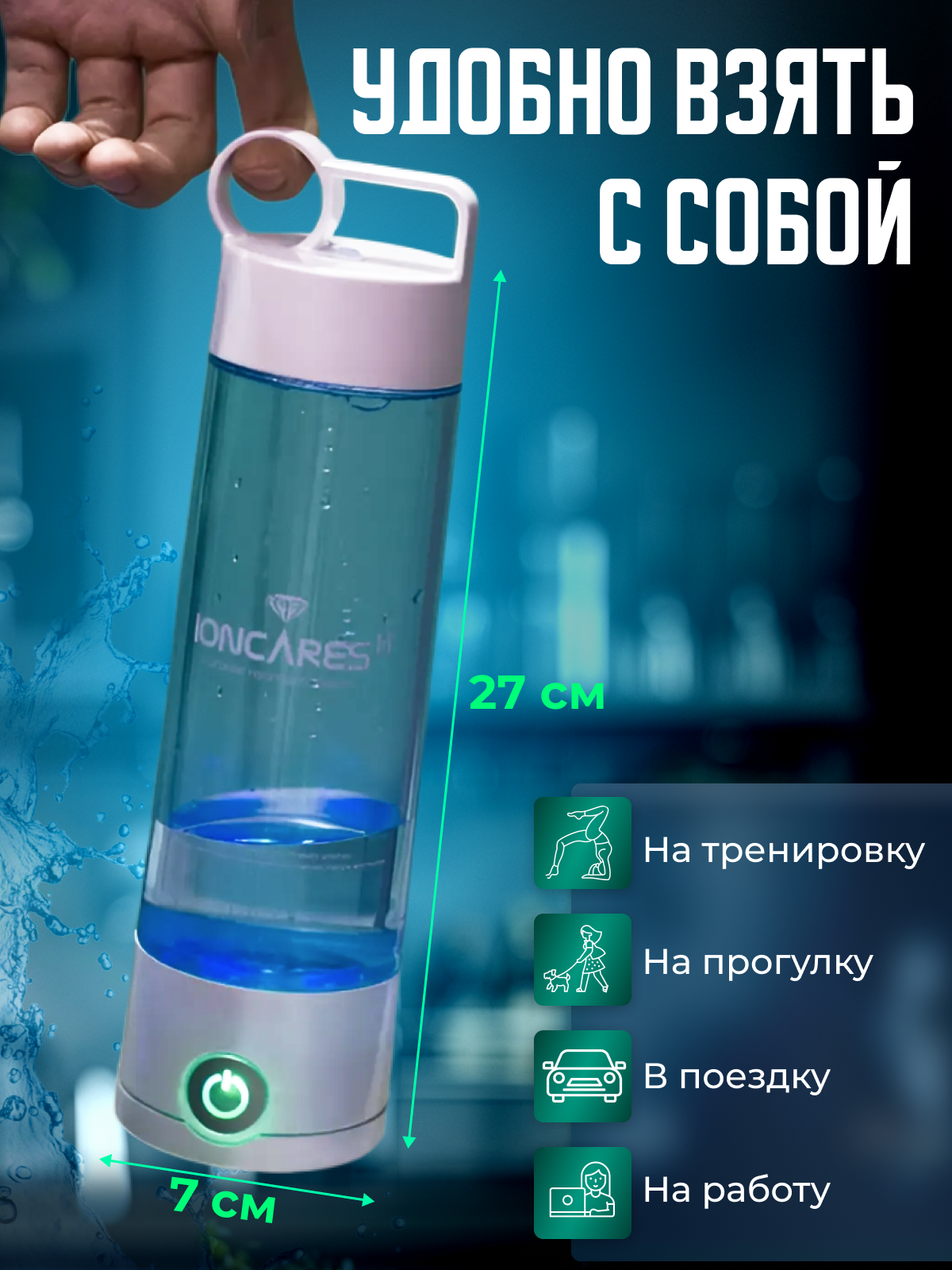 Генератор водородной воды Ioncare H+ 0.5 л портативный