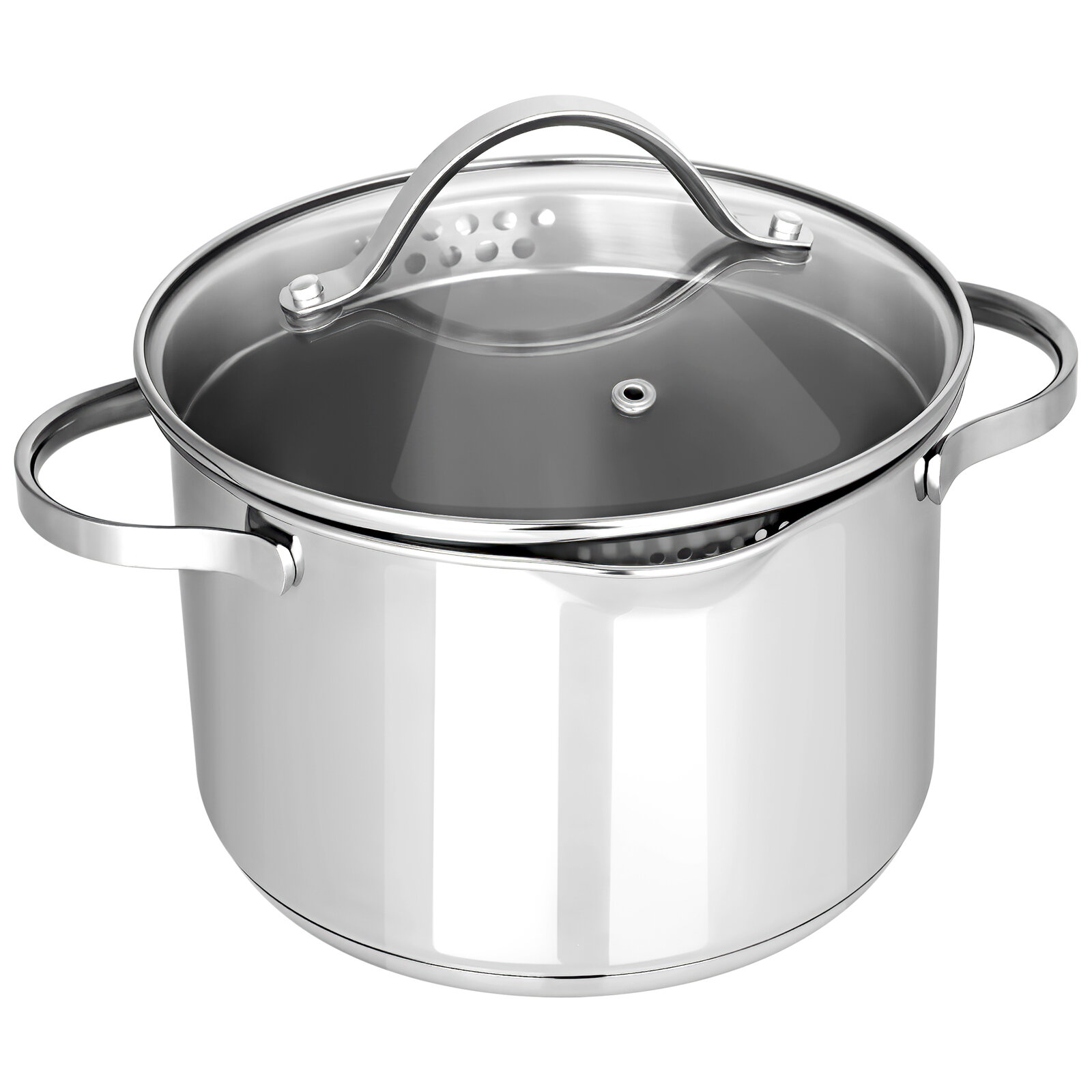 | Плюсы: | качество, объем, дуршлаг в крышке, ручки приварены и не нагреваются. |