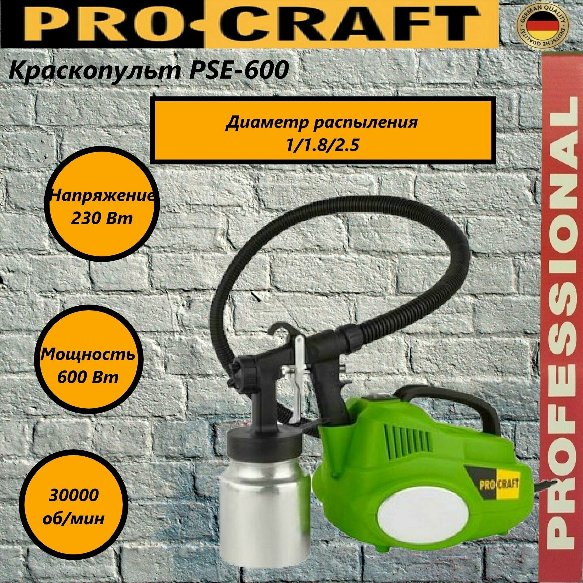 Краскопульт электрический Procraft PSE950, 700 мл/мин, 950Вт, 30,000об/мин, Вязкость 100