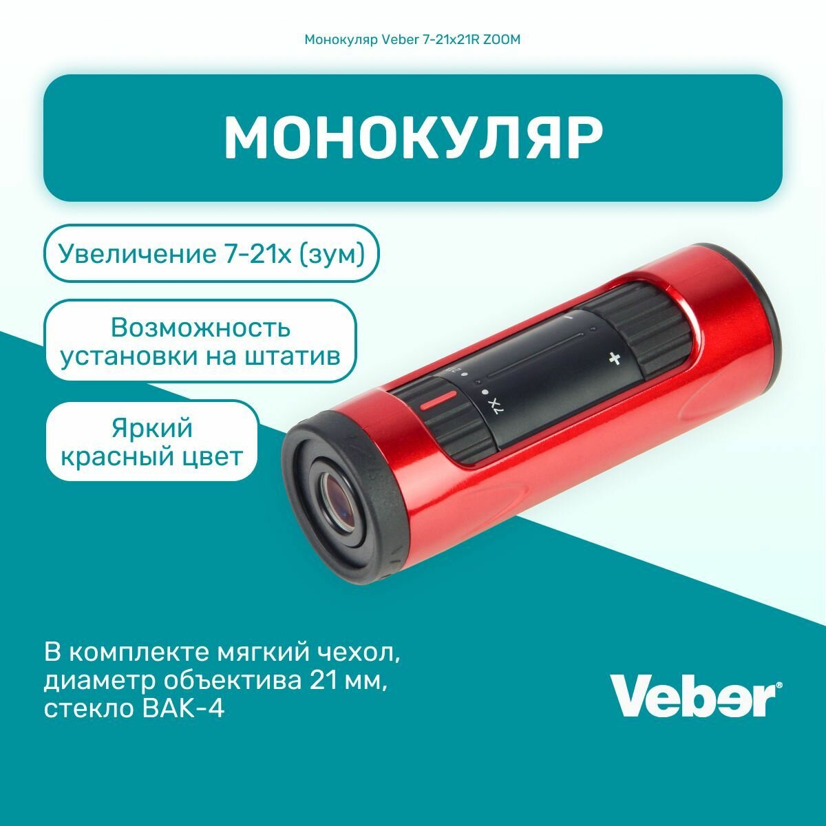 Купить Монокуляр Veber 7-21x21R ZOOM красный