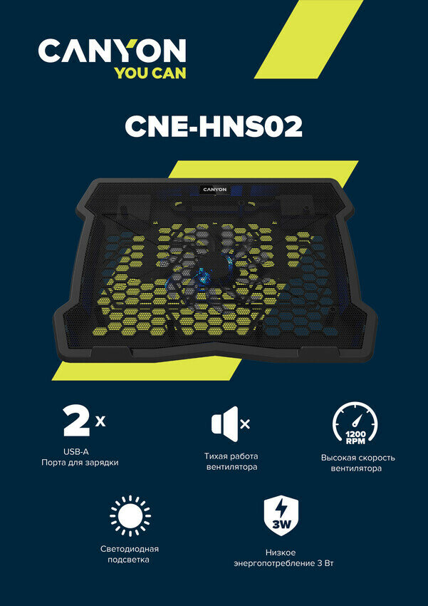 Подставка Canyon CNE-HNS02 Cooling для ноутбука 10”-15.6” DC 5V800-1000RPM AT1CNEHNS02