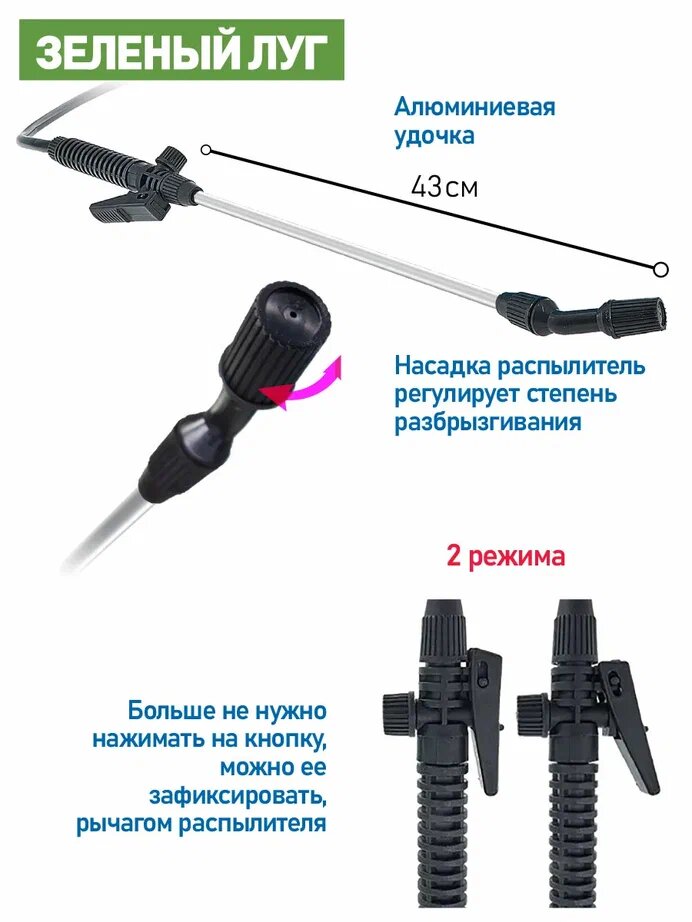 Опрыскиватель Зеленый луг 8л,алюминиевая удочка,