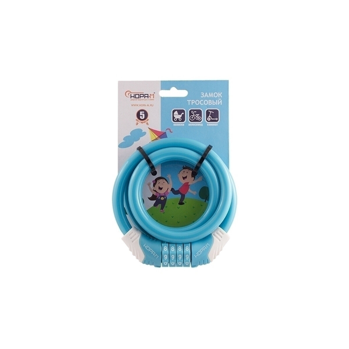 Замок велосипедный нора-м №31 размер 10х1000 мм голубой (18307)
