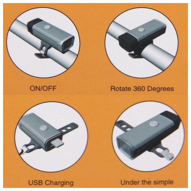 Фонарь велосипедный аккумуляторный светодиодный передний с гудком (оранжевый)