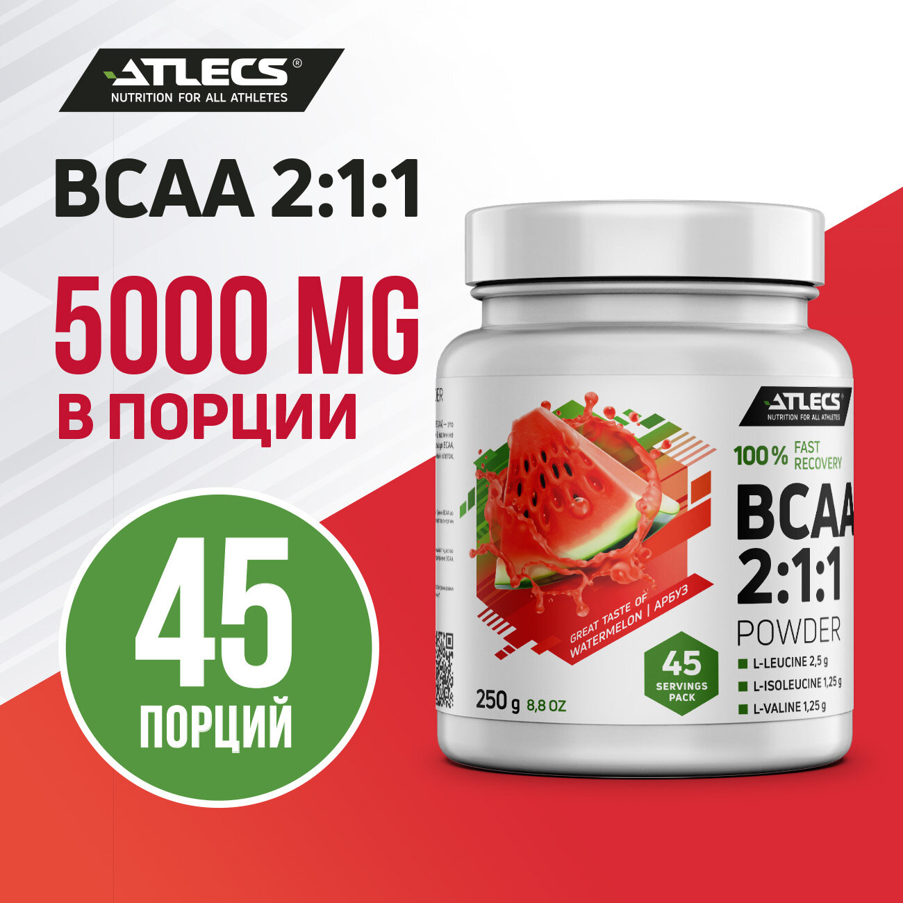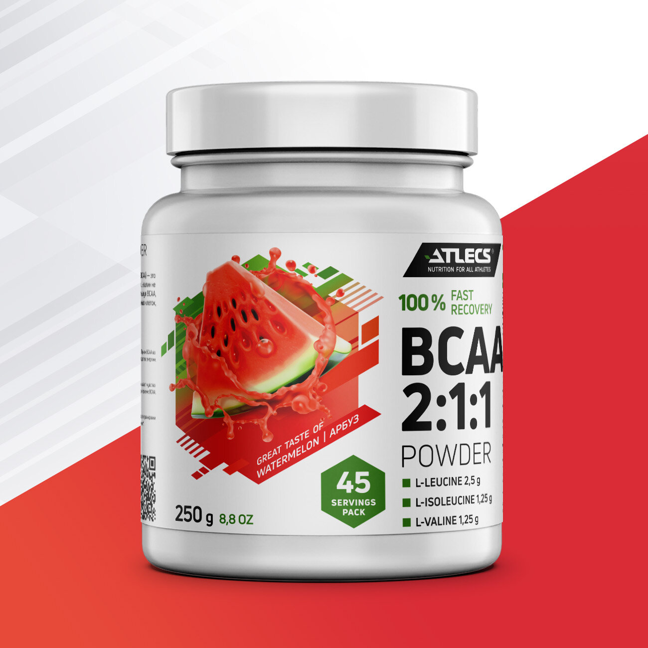 Купить Аминокислоты Atlecs, BCAA 2:1:1, арбуз, 250 гр (45 порций)