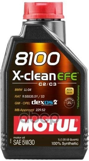 motul 5w30 8100 x-clean efe (1l)_масло мотор.!синт\acea c2/c3, bmw ll-04, mb 229.52,vw 505 00/505 01