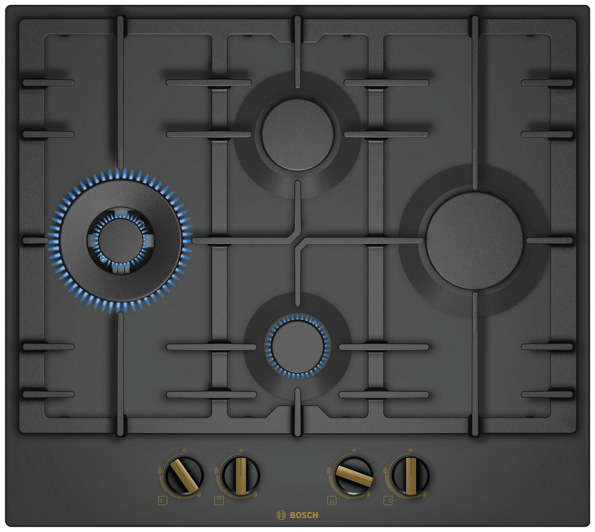 Варочная панель Bosch 60 см, Serie 6, 4 конфорки, WOK, газ-контроль, чистый черный цвет