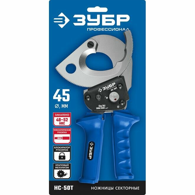 ЗУБР НС-50T O50 мм (Cu-300mm2, Al-500 мм2), 225-290 мм, секторные ножницы. . Серия Профессионал (23351-50)
