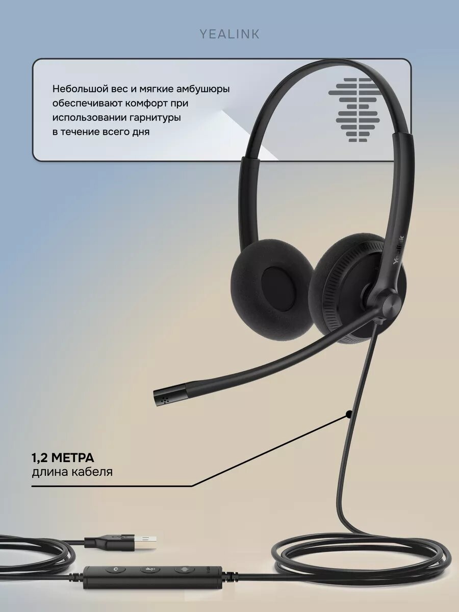 Гарнитура Yealink проводная Yealink UH34 Lite Dual UC черный