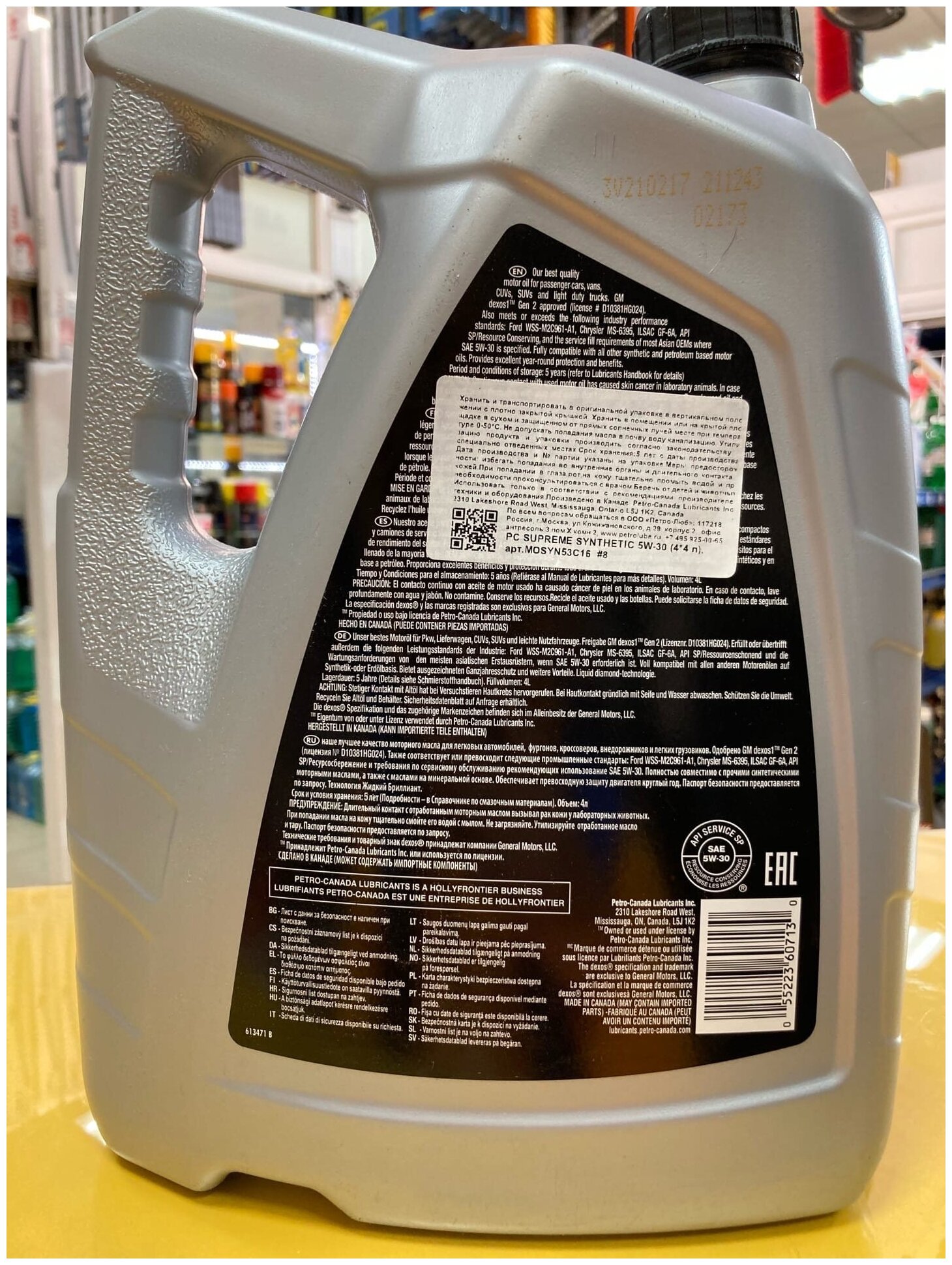 PETRO-CANADA MOSYN53C20 Моторное масо Petro Canada Supreme Synthetic 5W-30 5L страна происхождения (производства) - канада
