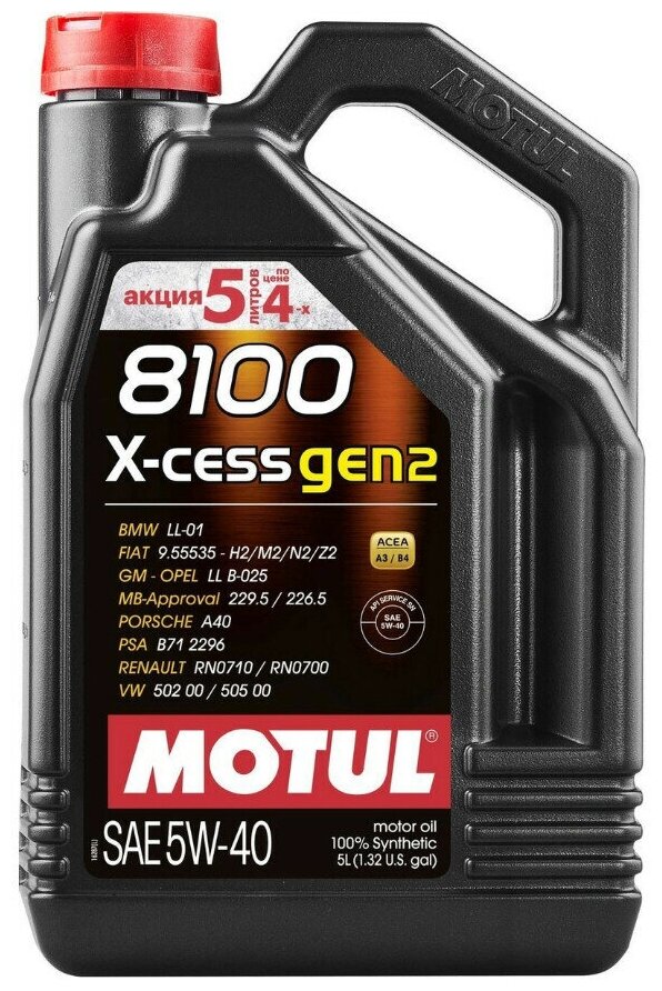 Синтетическое моторное масло Motul 8100 X-cess 5W40, 5 л, 4 кг, 1 шт