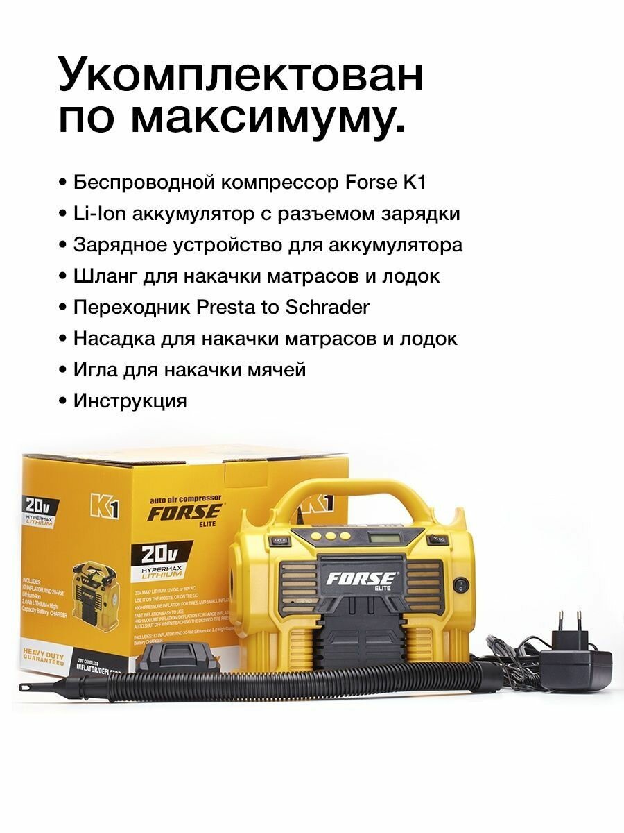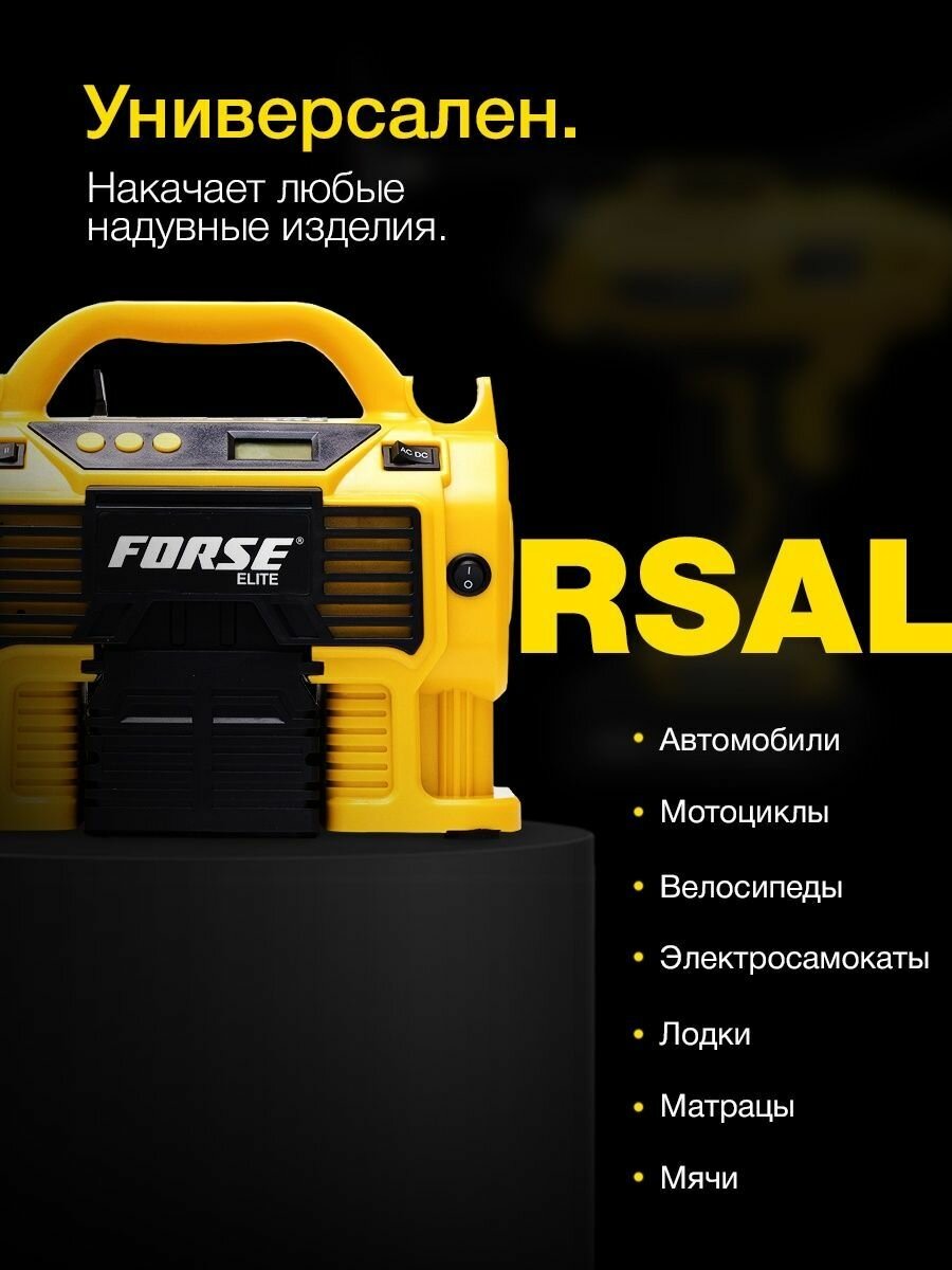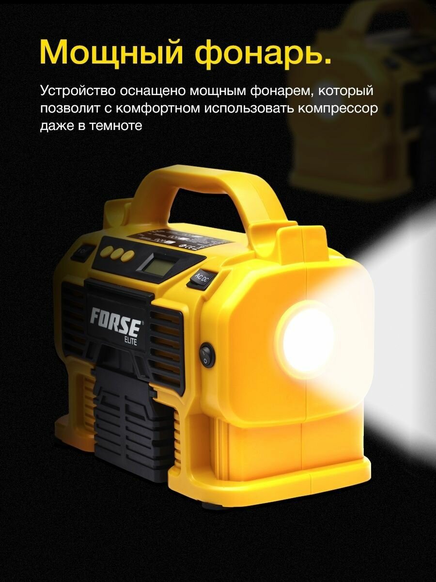 Многофункциональный воздушный автомобильный компрессор FORSE K1 с фонарем и манометром, беспроводной аккумуляторный, 50 л/мин, 20V интересное: