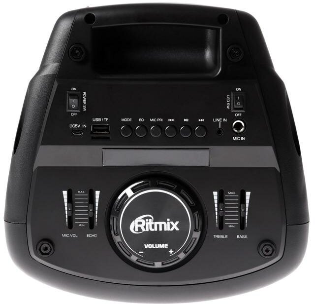 Колонка портативная Ritmix SP-870B,120Вт, bluetooth, MP3, FM, аккумулятор 4400мАч,дин. подсветка,эквалайзер - чёрная