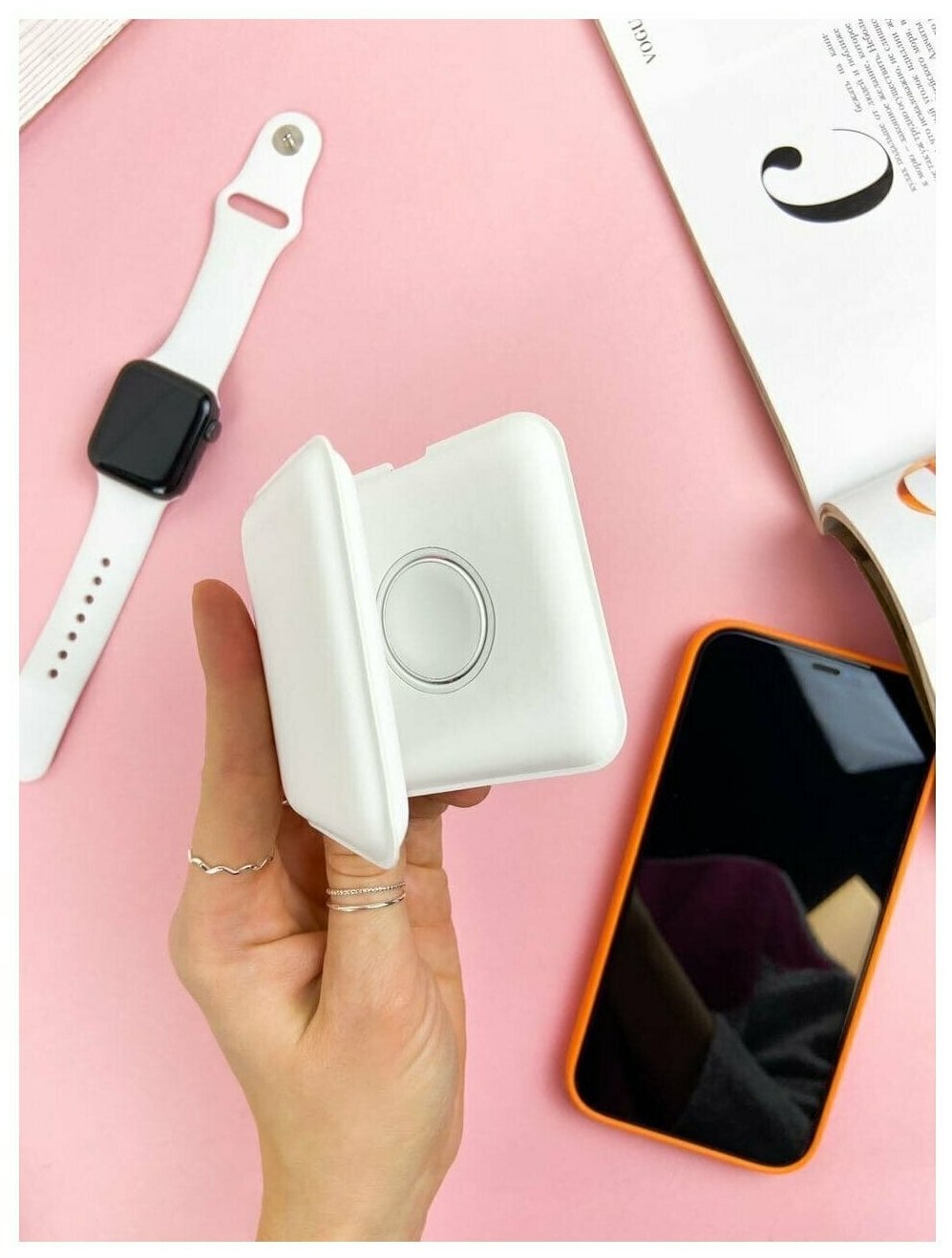 | Плюсы: | Заряжает с обычным блоком как телефон, так и часы. Цвет не пожелтел. Удобно брать с собой |