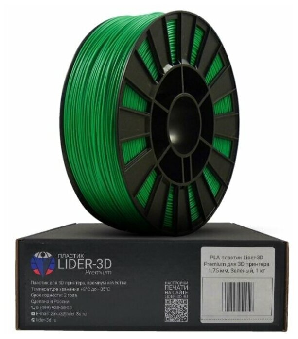 PLA пластик LIDER-3D Premium для 3D принтера 1.75 мм, Зелёный, 1 кг интересное:
