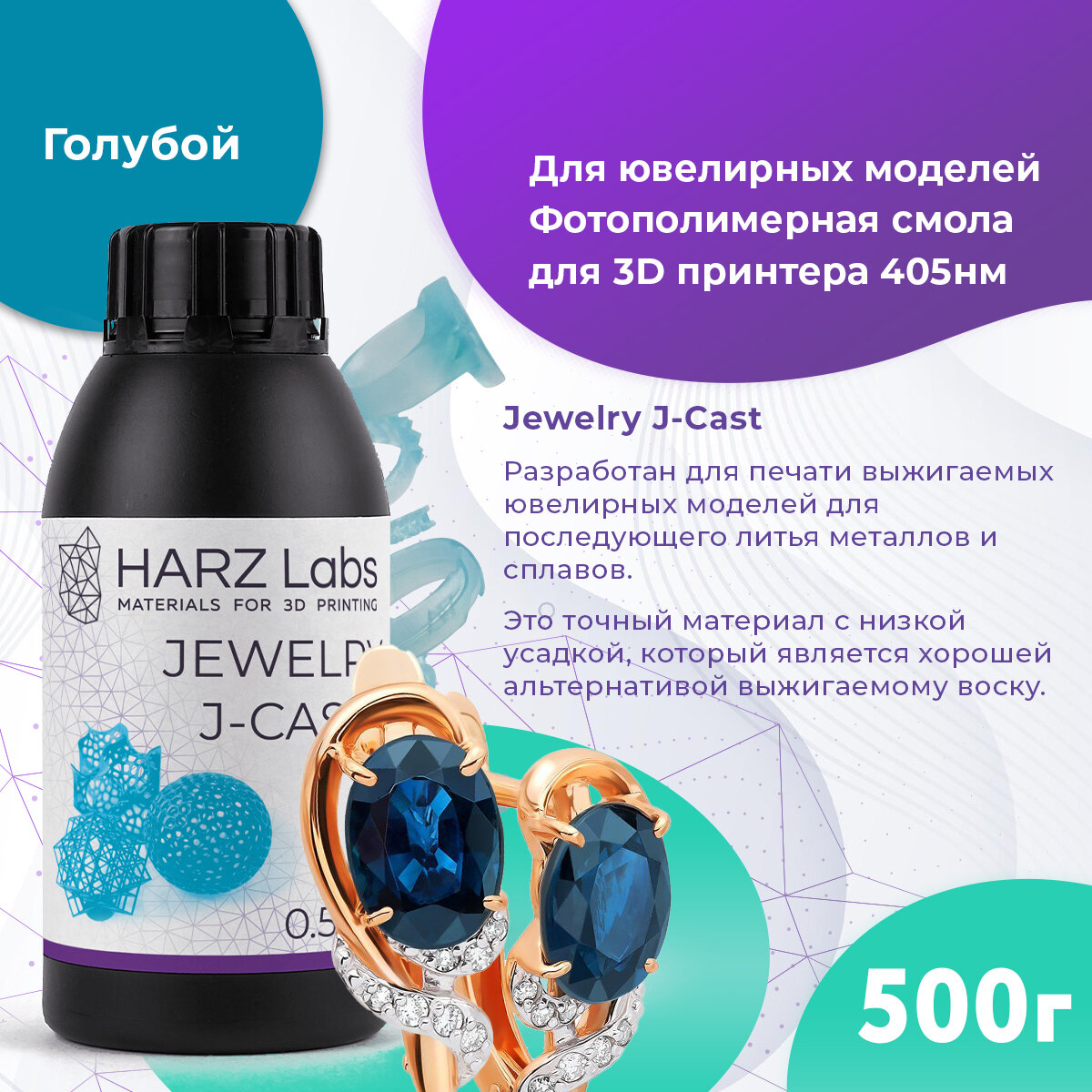 HARZ LABS Jewelry J-Cast для 3D принтеров LCD/DLP 1 л выжигаемая фотополимерная смола для 3d принтера