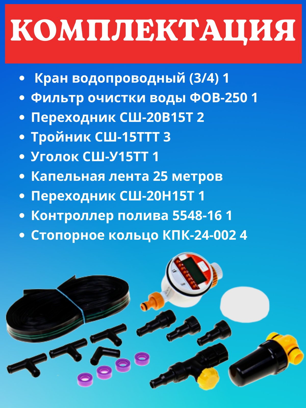 Благодатное земледелие Автоматический капельный полив от емкости с контроллером и фильтром КПК-24К, 25 м