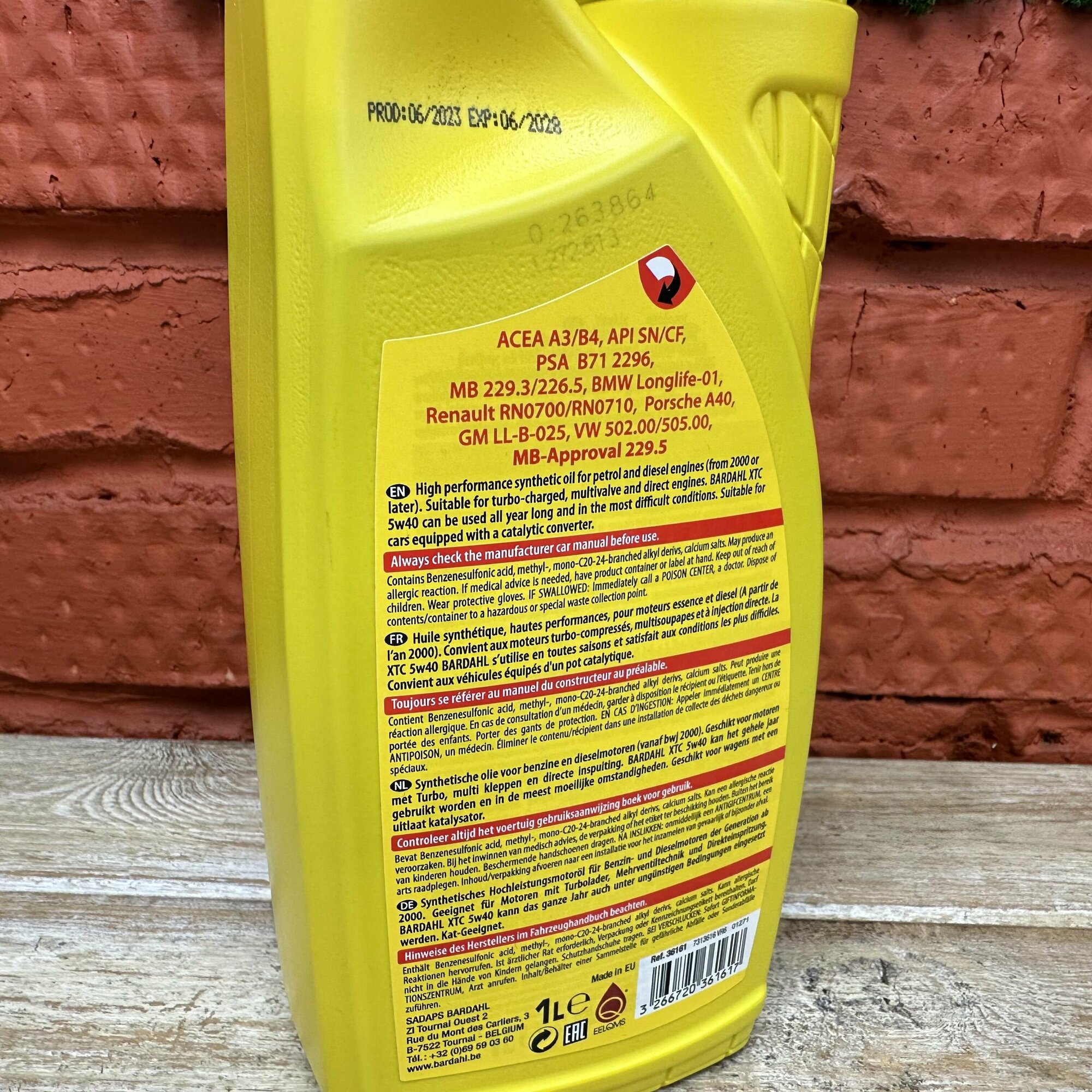 Моторное масло Bardahl XTC 5W40 в пластиковой канистре объемом 1 л.