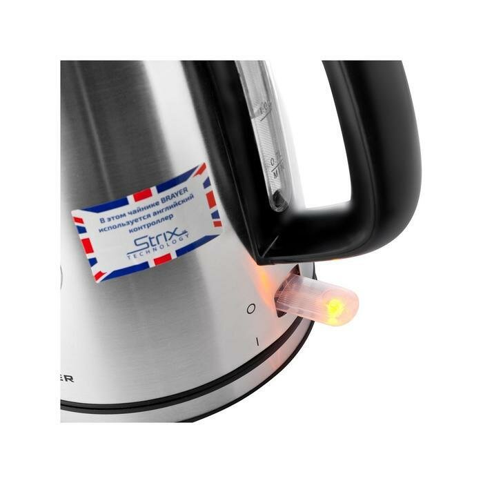 Чайник электрический BRAYER BR1022, 2200Вт, 1,7 л, STRIX, термометр, стальной