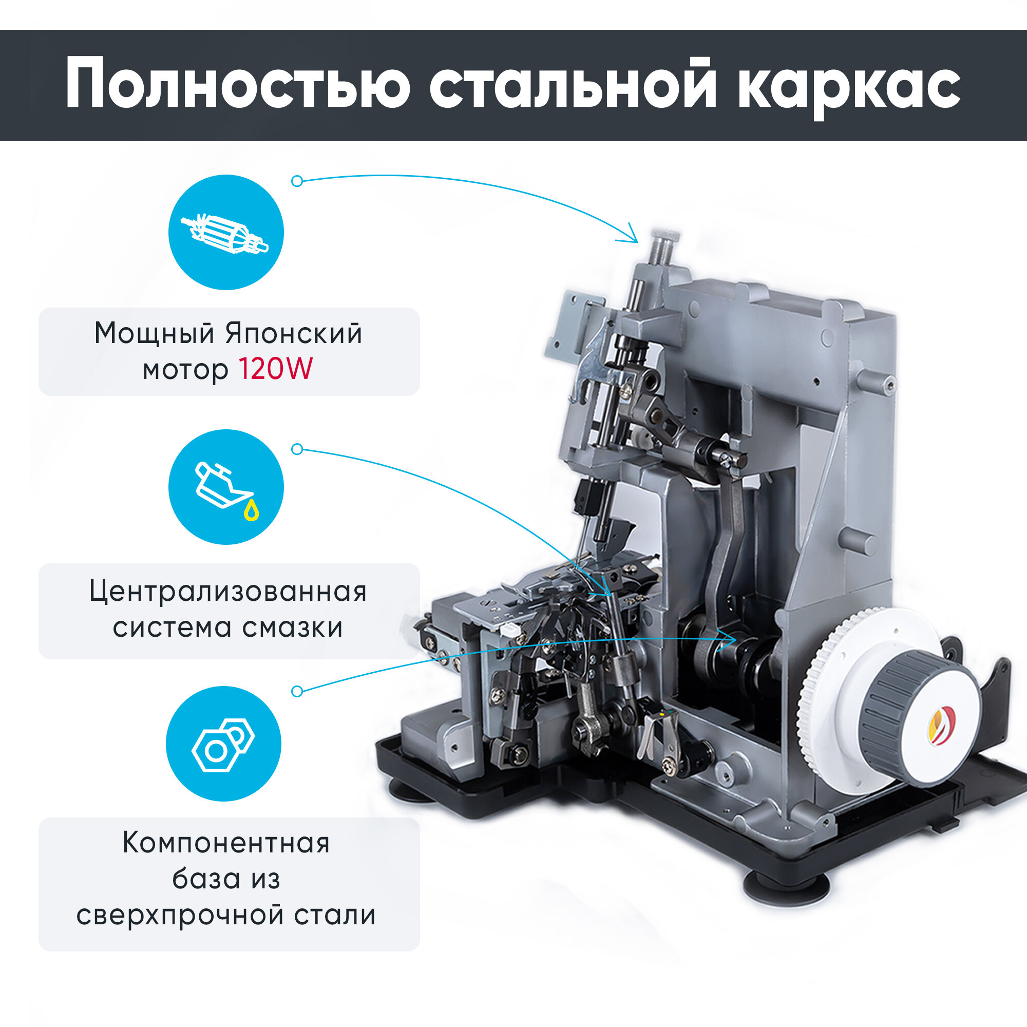 | Плюсы: | очень ровный шов, скорость до 1350 стежков в минуту, есть отдельная подсветка |