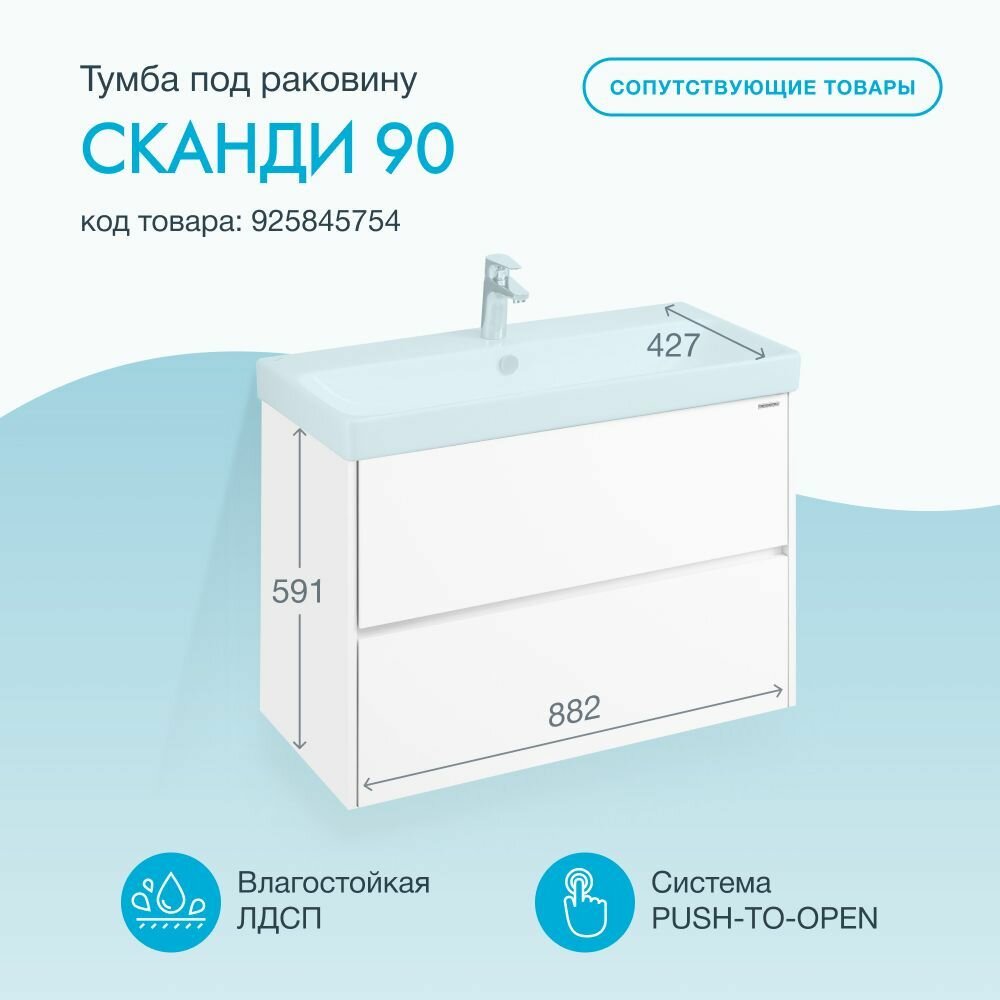СохранитьРаковина-умывальник в ванную керамическая Santek Адриана 90 1WH501629 интересное: