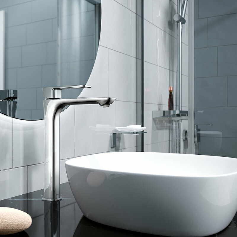 | Плюсы: | Красивое покрытие, на котром разводы и налет не появляются. Легкий для использования рычаг, тихая струя |