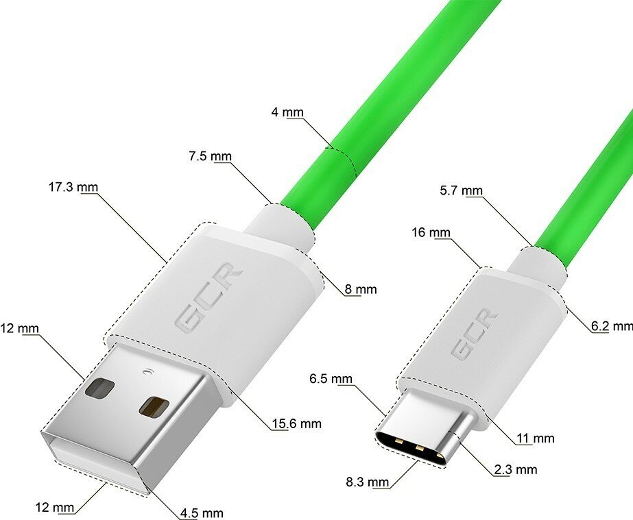 Кабель GCR QC TypeC быстрая зарядка 0,5 м (зеленый TPE, белые коннекторы) (GCR-52493)